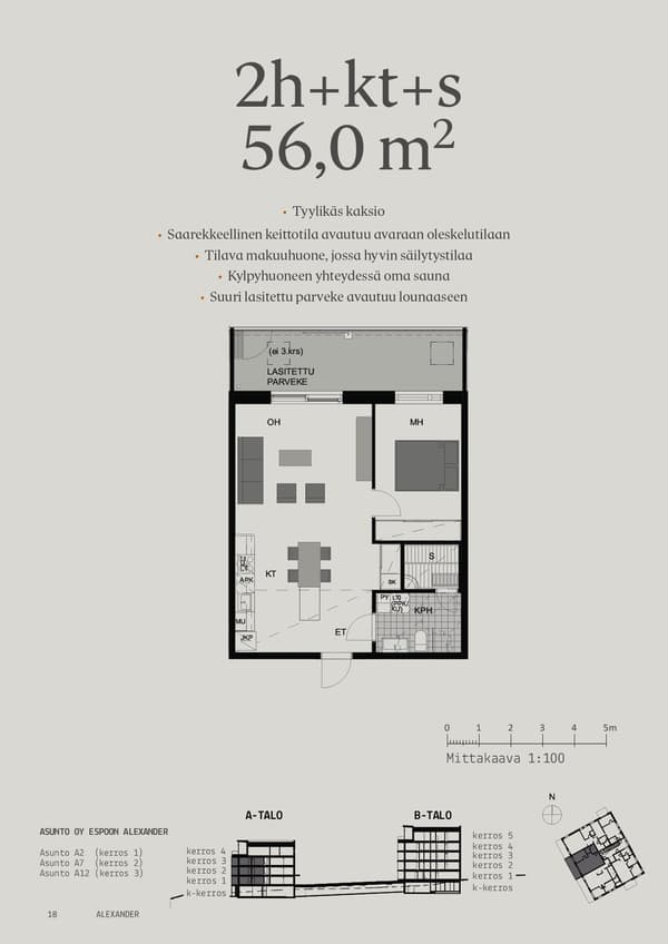Yhtiöön on suunnitteilla monipuoliset, asiakkaiden viihtyvyyttä lisäävät yhteistilat kuten talosauna vilvoittelutteluineen, talopesula ja kuntosali! Asuntoon kuuluu myös oma irtaimistovarasto.