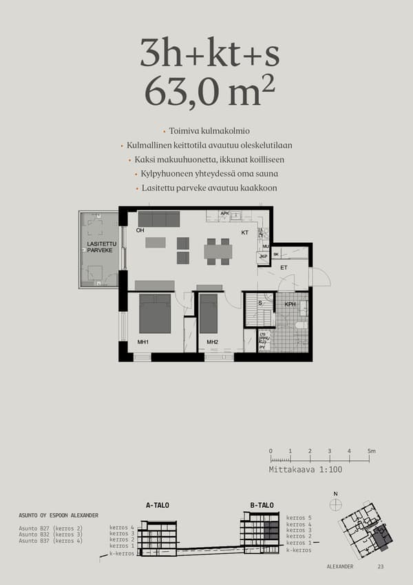 3H+KT+S, 60.5 m²