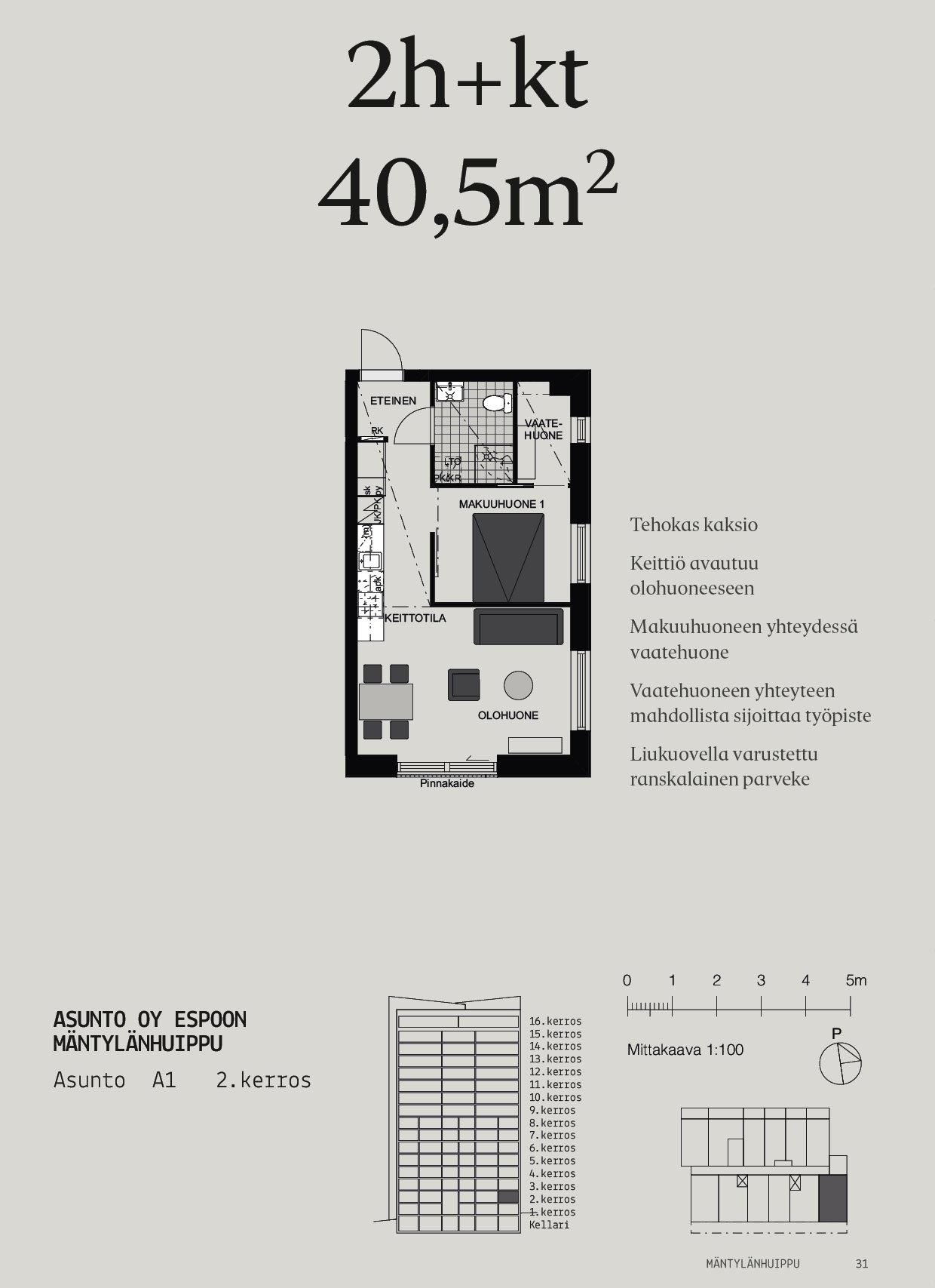 Tehokas 2. kerroksen kaksio Leppävaaran Puustellinkalliossa!