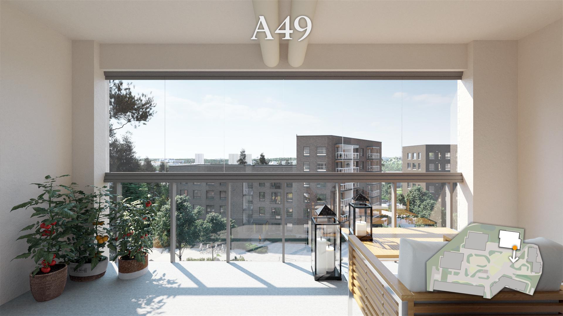 Katso kuva asunnon parvekkeelta! Kuva on havainnekuva johon ympäristö on mallinnettu, joten se voi poiketa joltain osin toteutuvasta. Ilmoituksen muut kuvat ovat havainnekuvia yhtiön asunnoista ja valokuvia esittelysaunnosta, joten ne eivät välttämättä vastaa juuri tämän asunnon pohjakuvaa.