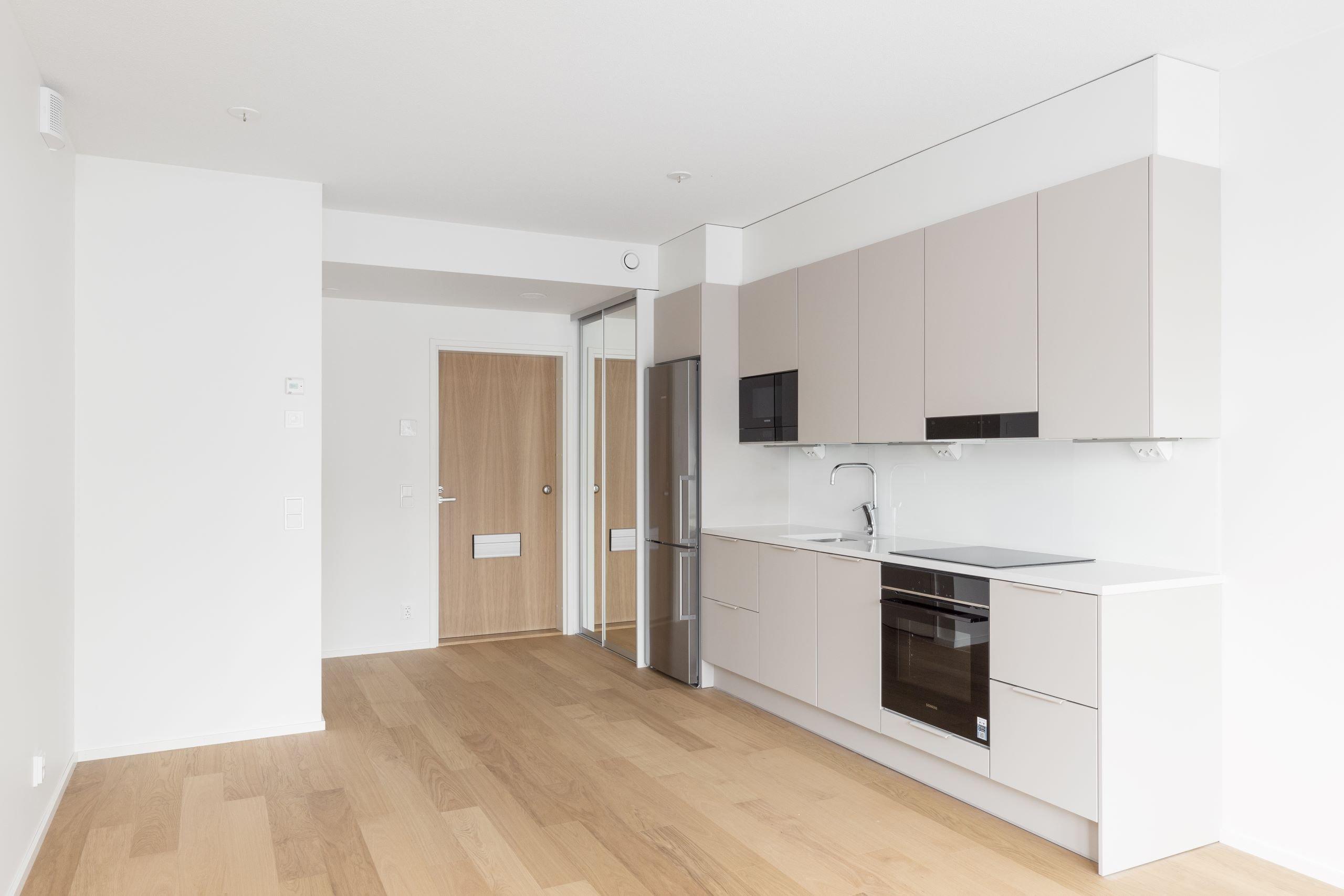 Tässä tyylikkäässä kaksiossa on avoin keittotila, joka yhdistyy olohuoneeseen. Makuuhuoneen yhteydessä vaatehuone. Kylpyhuoneen yhteydessä on oma sauna, joka lämpenee aina halutessasi.