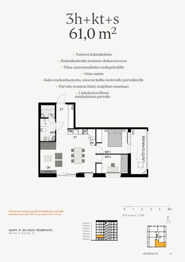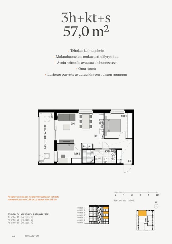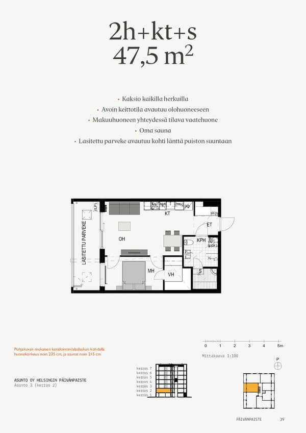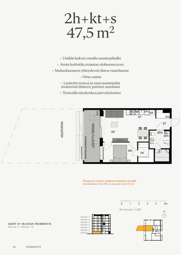 Korttelin piha-alueesta tulee suojaisa ja helppokulkuinen. Korttelin välittömään läheisyyteen on kaavoitettu päiväkoti. Autoilijoiden elämää helpottaa puolestaan pysäköintihalli. Ja jokainen voi nauttia alueen lukuisista palveluista, erinomaisista ulkomaastoista sekä sujuvista kulkuyhteyksistä.