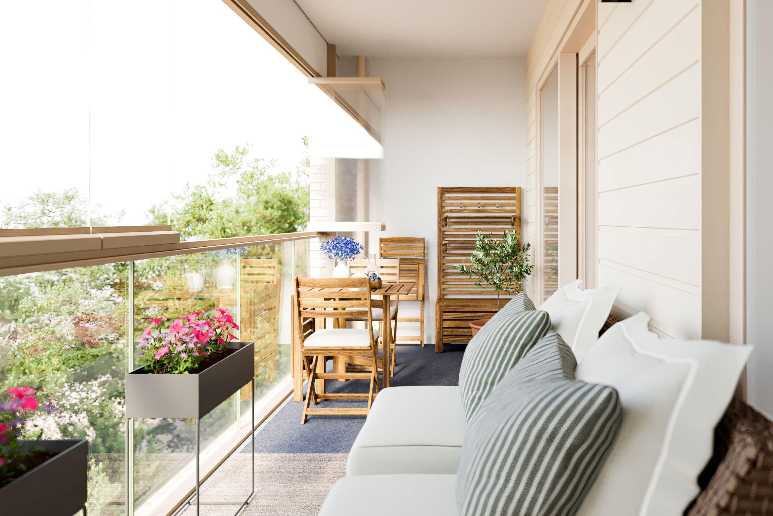 Tässä tehokkaassa kolmiossa on avoin keittotila, joka avautuu viihtyisään olohuoneeseen. Keittiön kalusteet ovat Puustellin ja eteisessä sekä molemmissa makuuhuoneissa säilytysratkaisut ovat toimivaa Elfaa. Kylpyhuoneen yhteydessä on oma sauna. Saunan jälkeen on mukava vilvoitella omalla lasitetulla parvekkeella. Parvekkeelle käydään kokolasisesta liukuovesta ja se avautuu kohti länttä, vehreän puiston suuntaan.