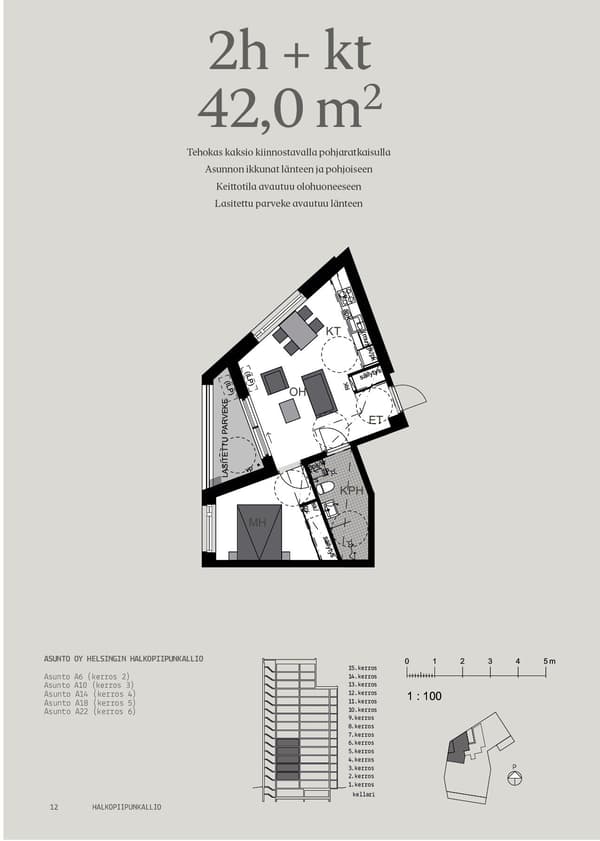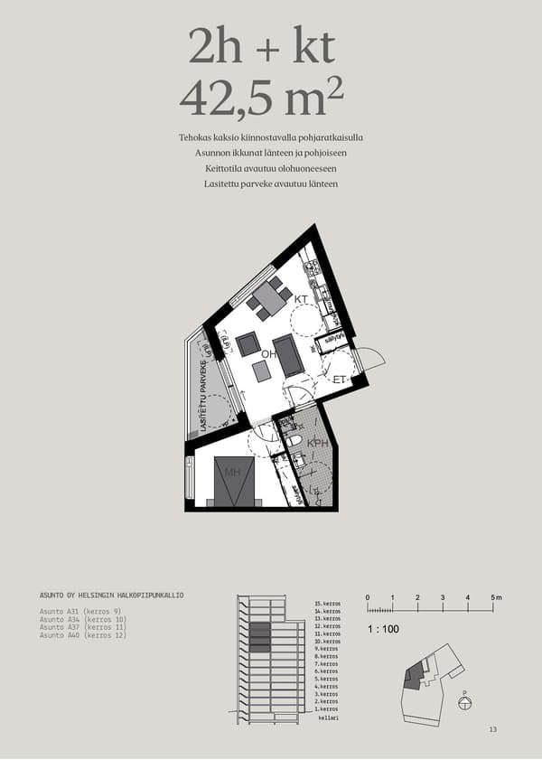 Tehokas kaksio uniikilla pohjaratkaisulla – Tutustu tähän kotiin uudessa Keski-Pasilassa!