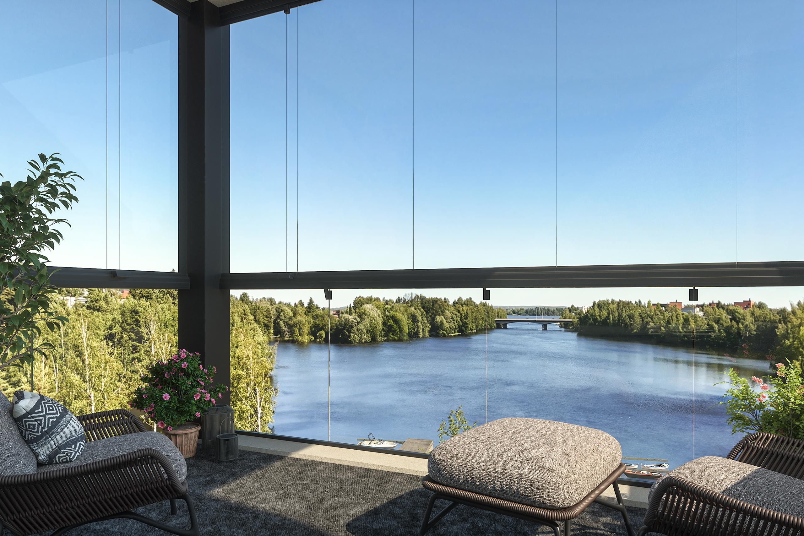 Tässä valoisassa neliössä on avoin keittotila ja olohuone. Keittotilassa on saareke ja tilaa suuremmallekin ruokapöydälle. Koko asunnossa on laadukkaat sisustusmateriaalit, kuten Puustellin keittiöt ja säilytysratkaisut. Päämakuuhuoneen yhteydessä on oma vaatehuone ja asukkaiden arkea helpottamassa on erillinen kodinhoitotila sekä wc. Asunnon tunnelman kruunaa oma lasitettu parveke. Parveke avautuu koilliseen, järven suuntaan!