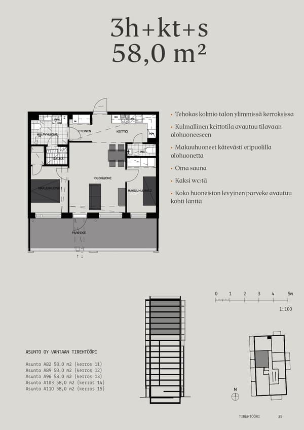 16-kerroksinen Tirehtööri sijaitsee Myyrmäen uudessa kaupunkikorttelissa palveluiden ja liikenneyhteyksien ympäröimänä. Lenkkireitit ja muut liikuntamahdollisuudet kotiovella.