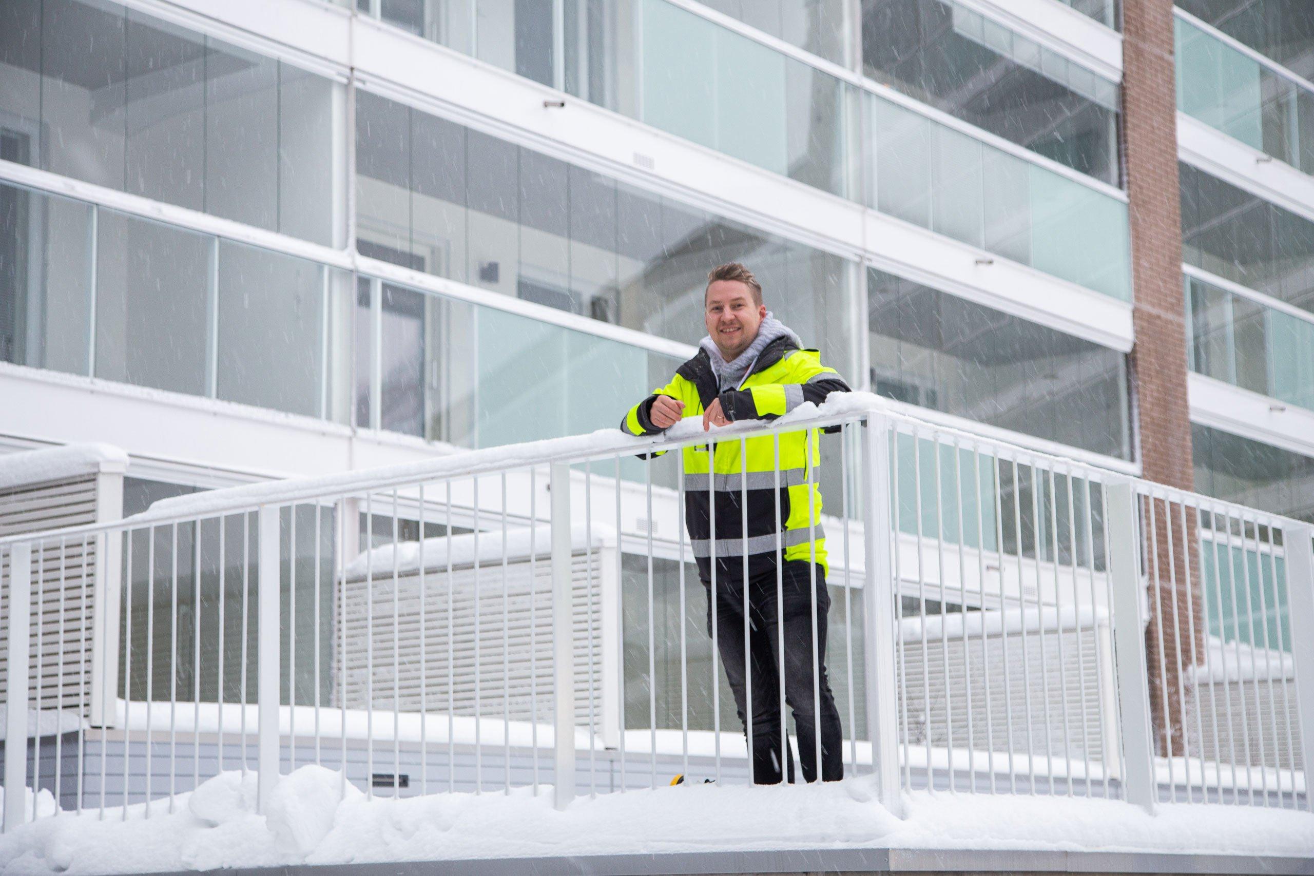 Lauri vastaa Onnikalliossa sisätöistä. Käytännössä työtehtäviin kuuluu tehtävien aikatauluttamista, laadunvalvontaa, työmaan arjen pyörittämistä ja asukkaiden muuttotarkastuksia, nyt kun Onnikallion luovutusvaihe lähestyy.