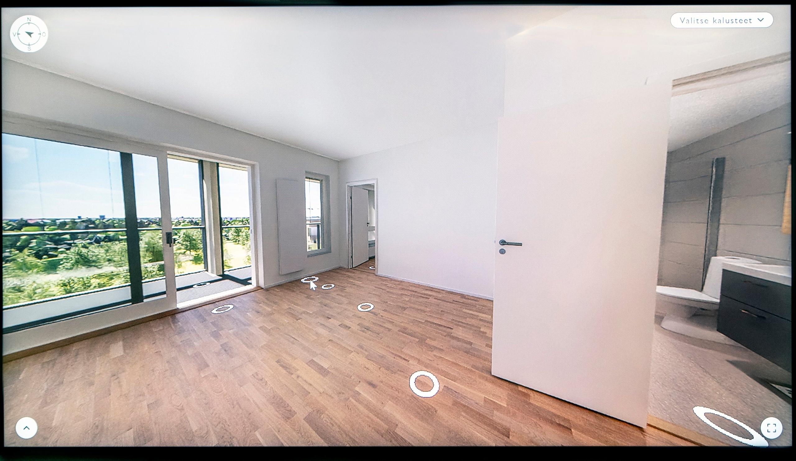 – Mallinnus kertoo esimerkiksi ilmansuunnat ja sen, milloin aurinko paistaa parvekkeelle ja miten sen kulkusuunta päivän aikana muuttuu, Kosunen sanoo ja kertoo, että virtuaalikierroksen avulla voi miettiä, vaikka sopivan pöydän paikan parvekkeelle aamukahvin nauttimista ajatellen.